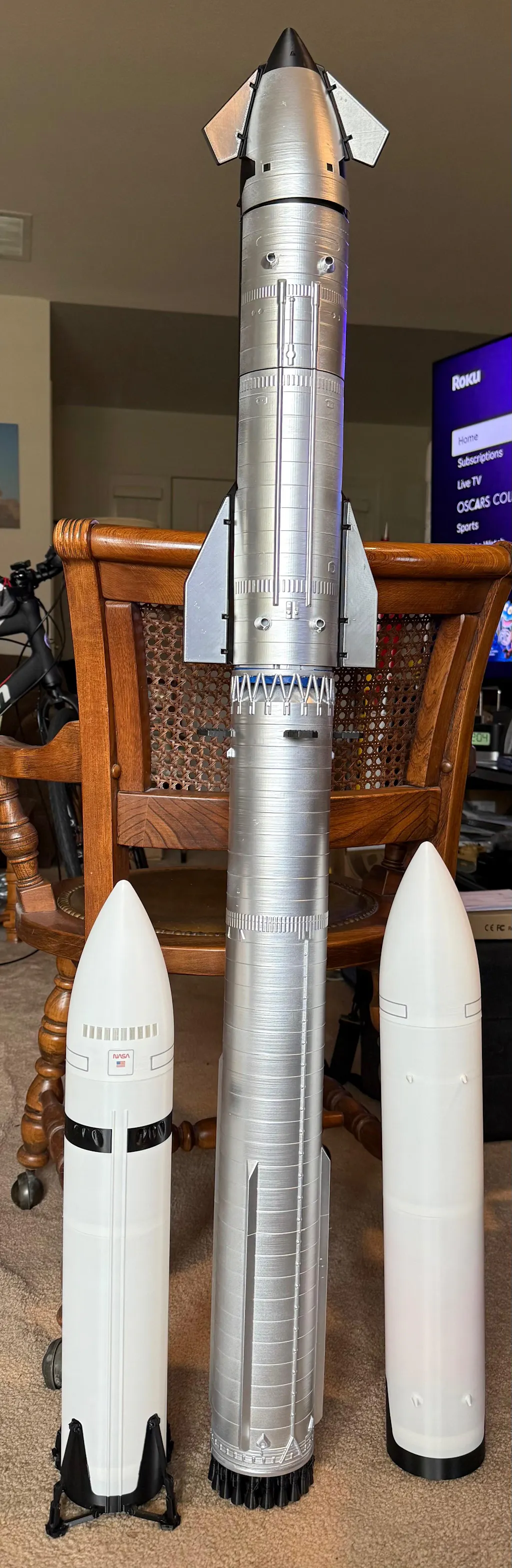 The SpaceX Starship V3 Bundle with Booster unites the complete Version 3 Starship system in magnificent 1:100 scale, featuring the powerful V3 Booster alongside the mission-specialized upper stages: the V3 Tanker, V3 Depot, and V3 HLS (Human Landing System). Each starship is fully launchable, with each kit including a dedicated launch engine mount that accepts a single E12-4 model rocket engine plus reinforced, deployable stabilizing fins for stable ascents, impressive altitudes, and safe parachute recoveries. Swappable decorative high-detail engine clusters—showcasing realistic Raptor nozzles, turbopumps, gimbals, and more—enable stunning static displays that highlight propulsion details. The booster boasts its integrated hot staging ring, all 33 meticulously modeled Raptors, three new-generation grid fins, and Raptor alignment tool, while the upper stages feature docking pins (Tanker/Depot compatibility), flap-free Depot design, and working landing legs on the HLS. Consistent stainless-steel aesthetics, precise proportions, and modular attachment rings allow seamless full-stack assembly for epic recreations of real launches.